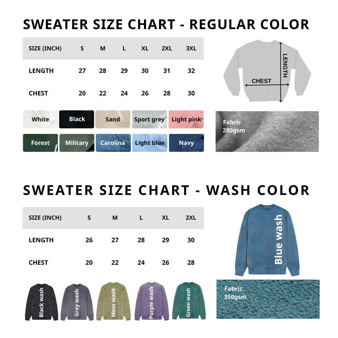 SWEATER SIZE CHART - WASH COLOR